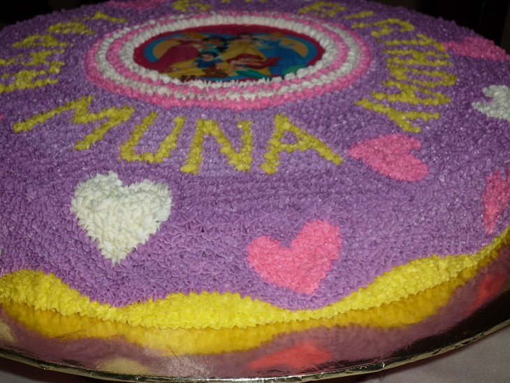 Marzu's little daughter Camelia is turning 4 and loves Barbie Mariposa, so the doting mom ordered an upright doll cake that was inspired by it. The actual Barbie Mariposa had knee length skirt, well obviously that won't do for this cake (how would it stand?). Lucky Nurin has the doll, I borrowed it to replicate the dress. The only thing that wasn't there were the wings. There's no way to attach it, it would've been possible on a fondant doll cake though. (Hmm.. it's something for me to ponder upon.. will do more experiments!) I finished decorating the cake at 1.30am, was very pleased with the final product. I am glad Marzu and Camelia were happy with it. It came to my attention that Camelia had guarded her cake protectively so no one could come near it at the party. LOLs! Kids do the funniest things... Happy 4th birthday dear Camelia!